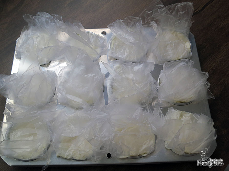 - Despeje o creme na(s) forma(s) com o plástico filme.