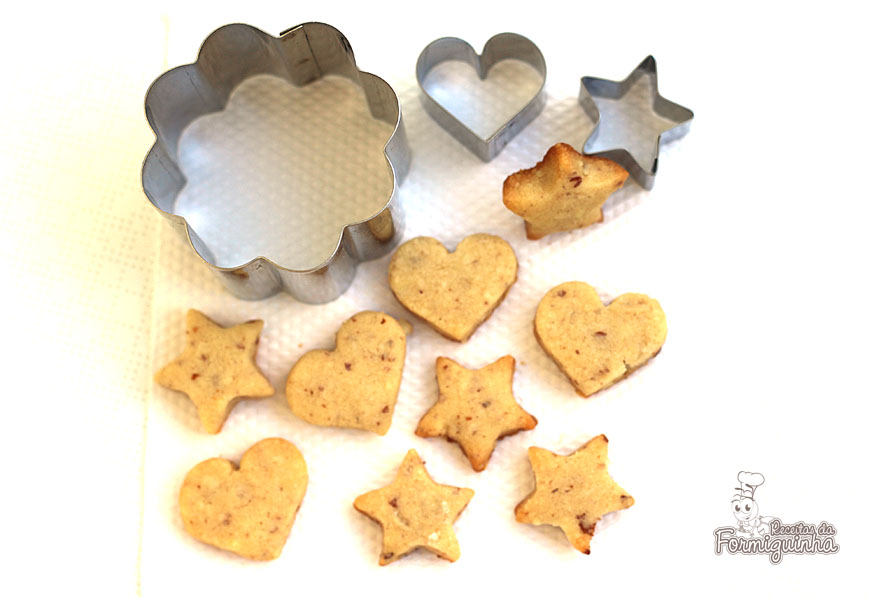 12. Quando os biscoitos estiverem totalmente frios, separe os “inteiros” dos “furados”.